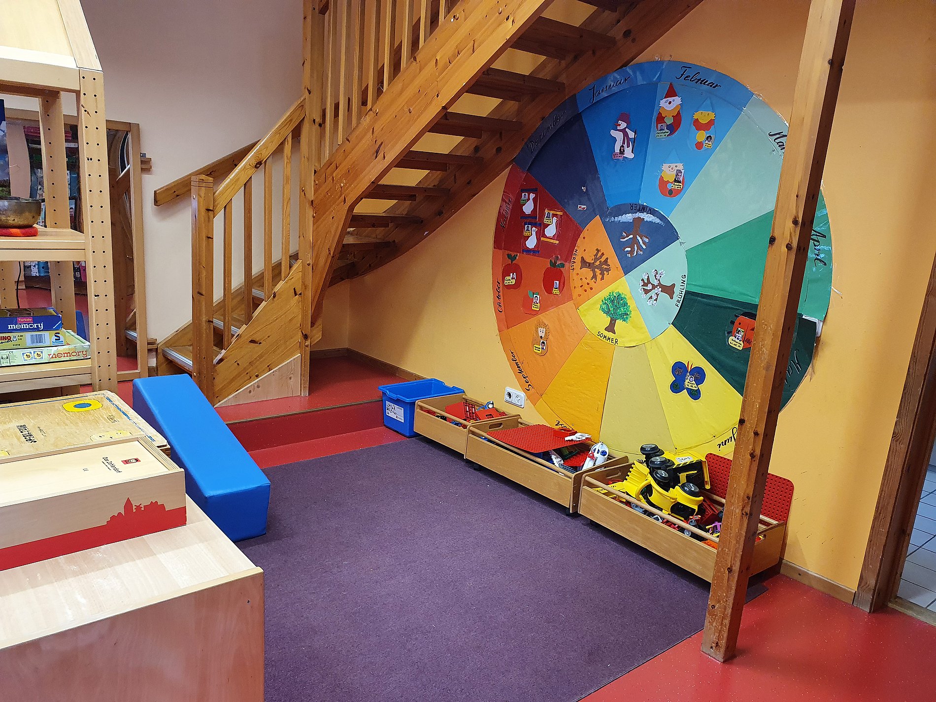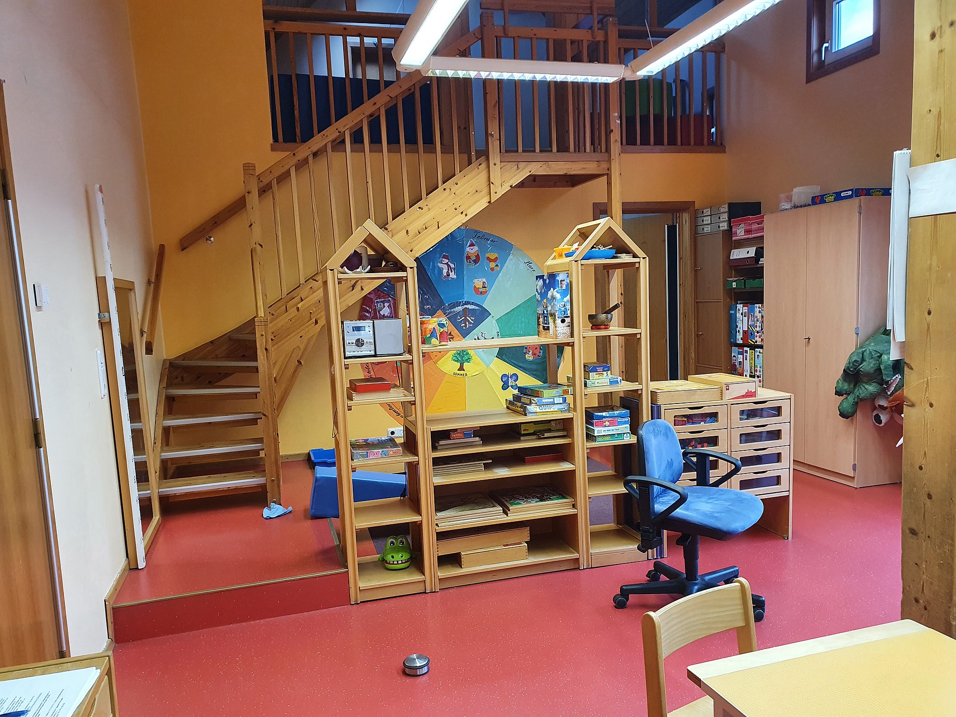 Vieles rund um Sprache findet natürlich auch hier statt. Z.B. die Angebote der gezielten Sprachförderung für Kinder mit Sprachauffälligkeiten oder noch fehlenden Deutschkenntnissen. Der Raum wird auch für den Vorlaufkurs der Grundschule oder die Frühförderung kann dieser Raum genutzt.