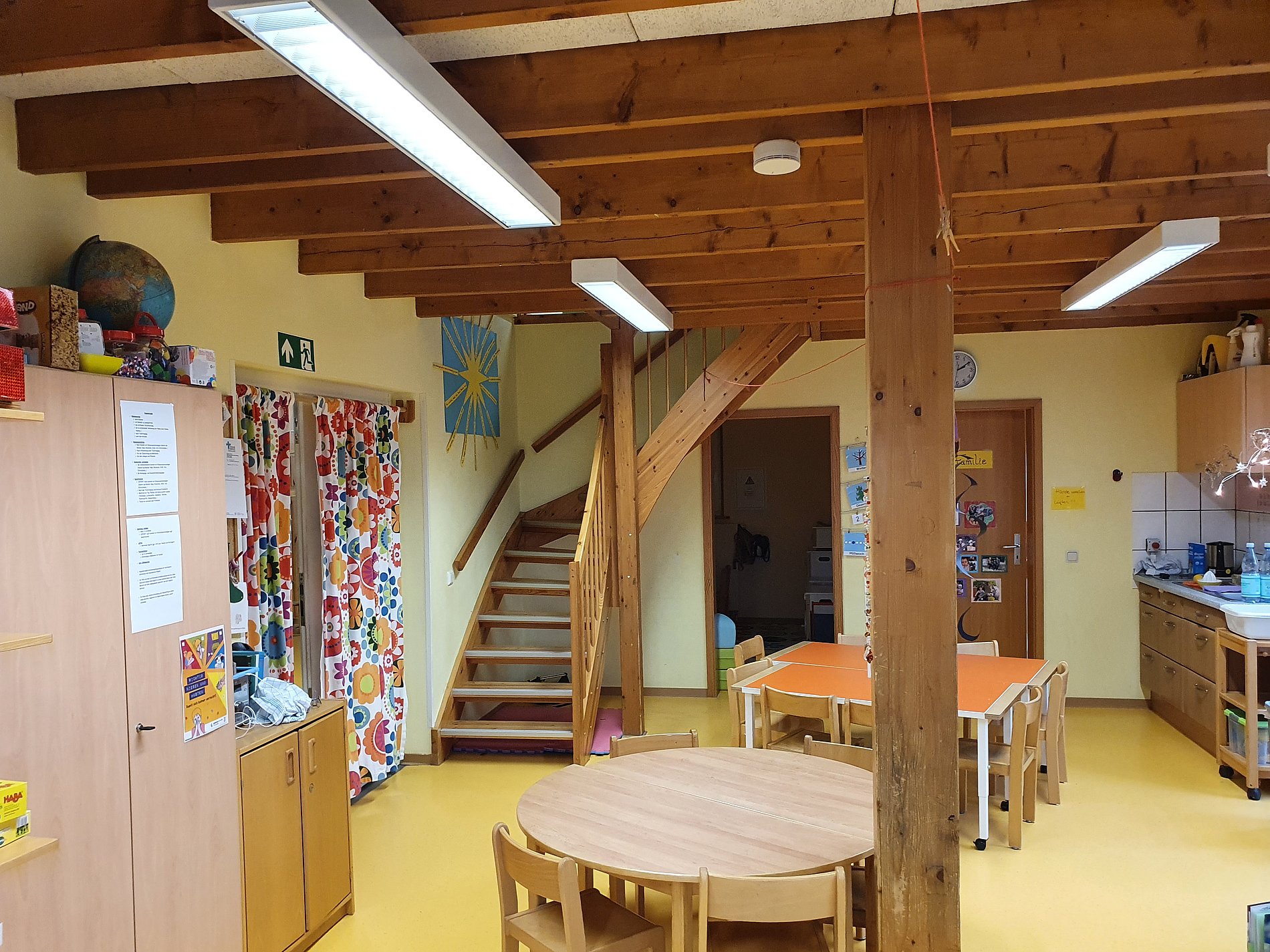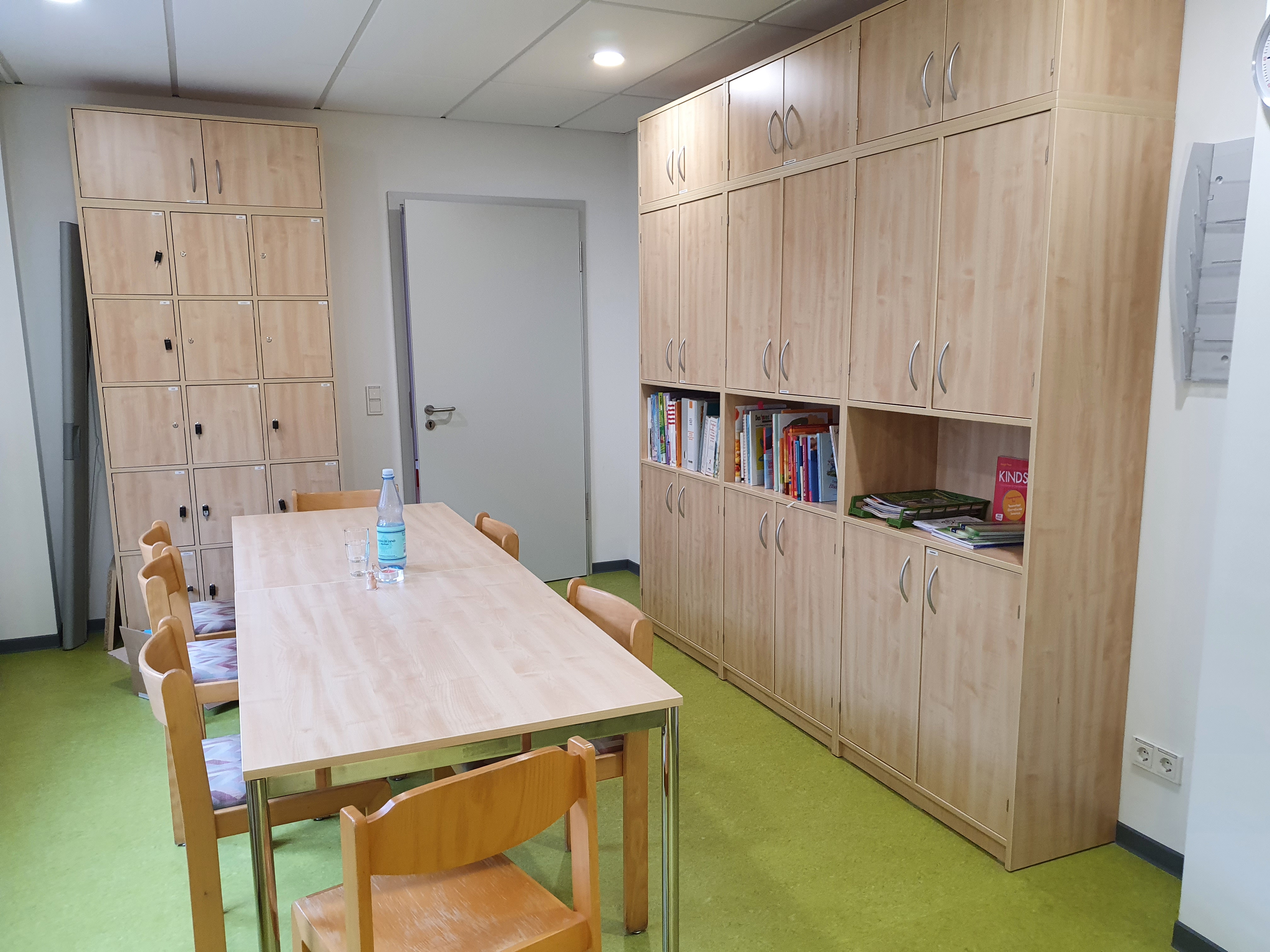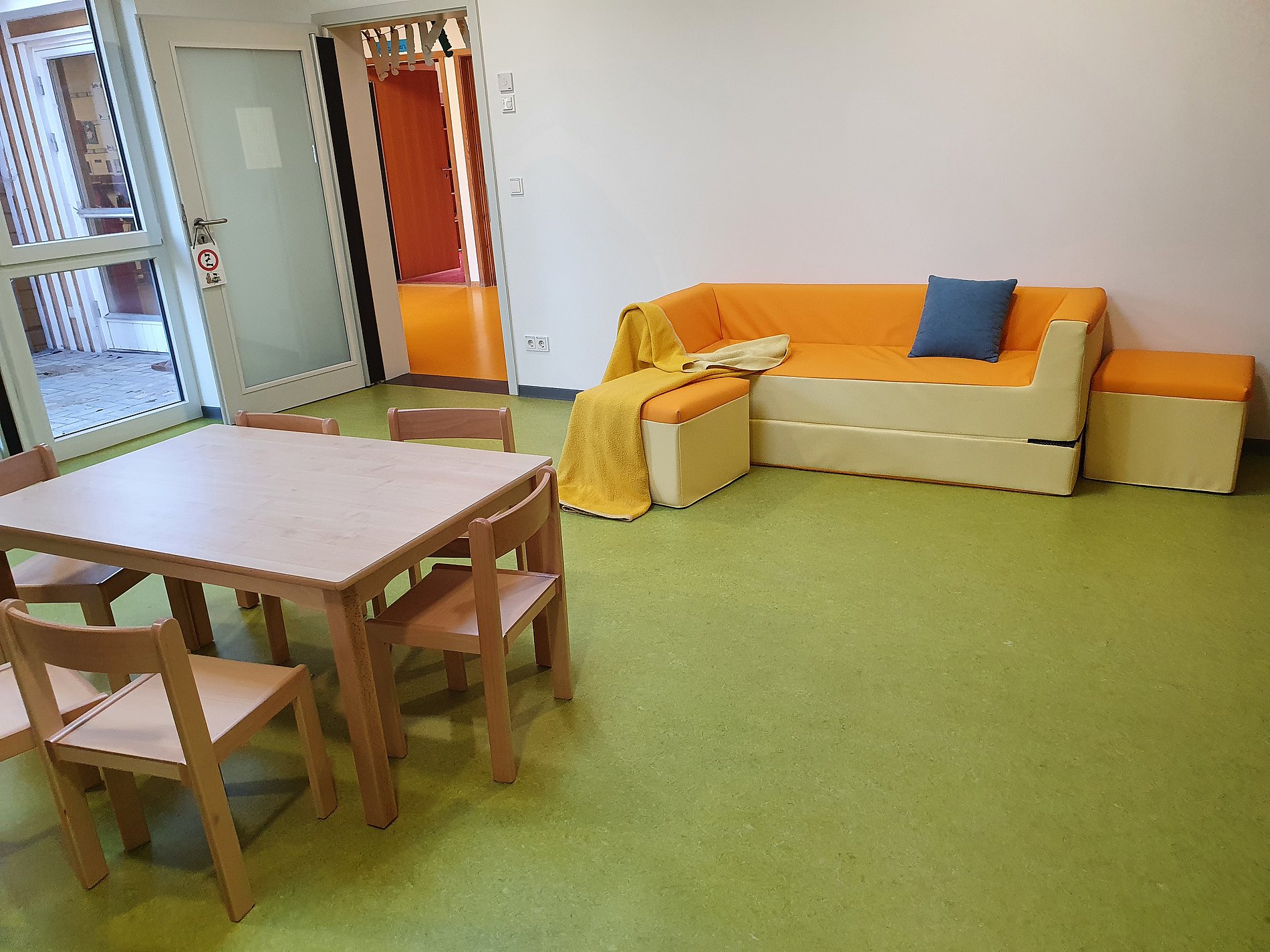 Der Personalraum dient den Mitarbeiterinnen der KiTa als Rückzugsraum während der Mittagspause. Außerdem finden dort Teambesprechungen, Vorbereitungszeiten und Elterngespräche statt.