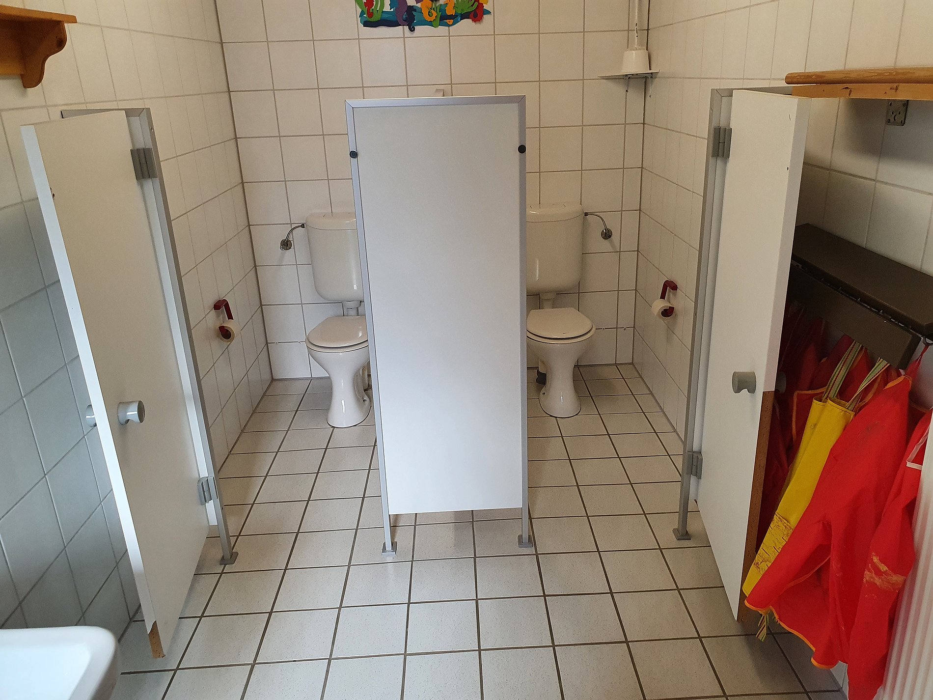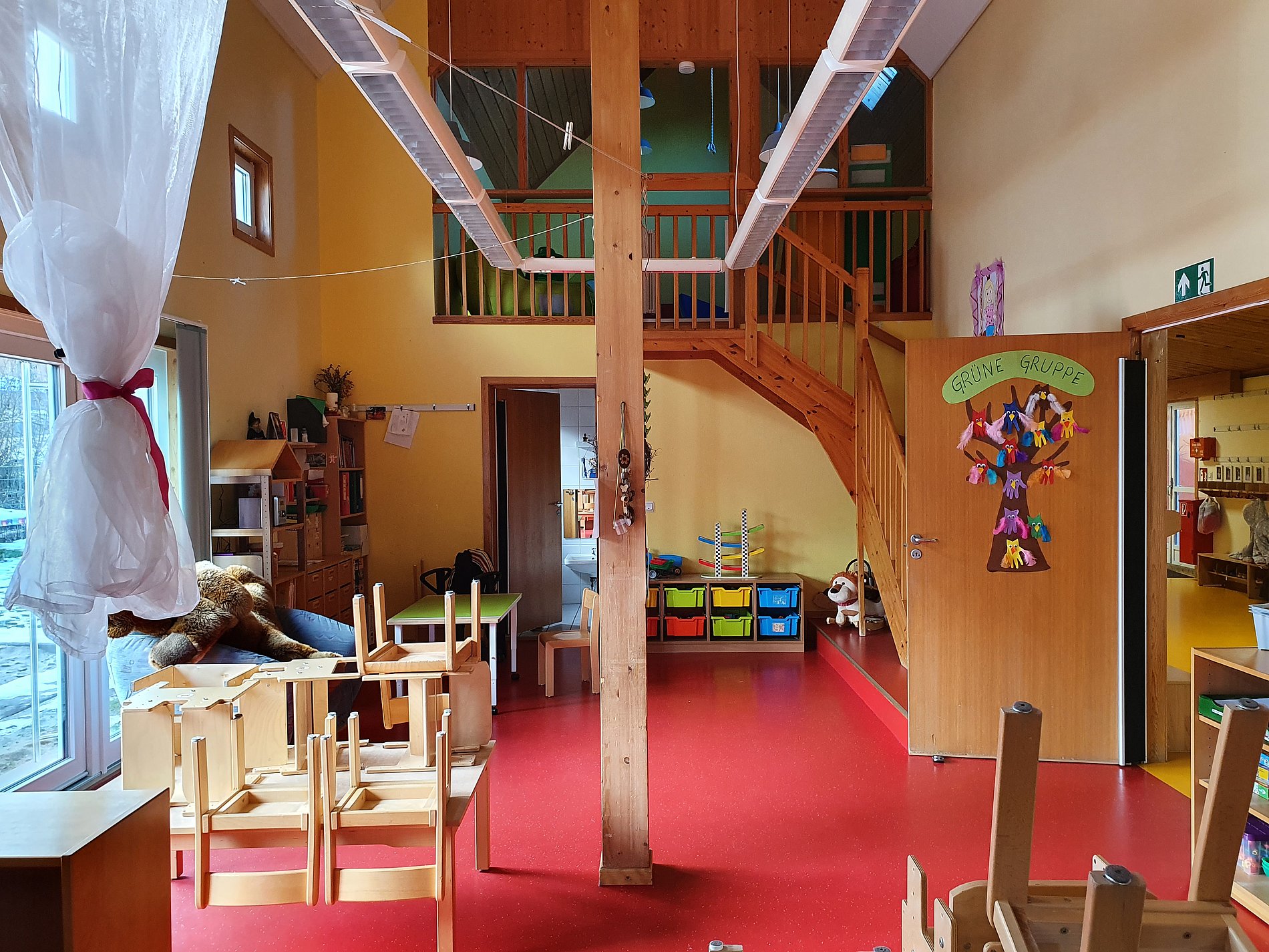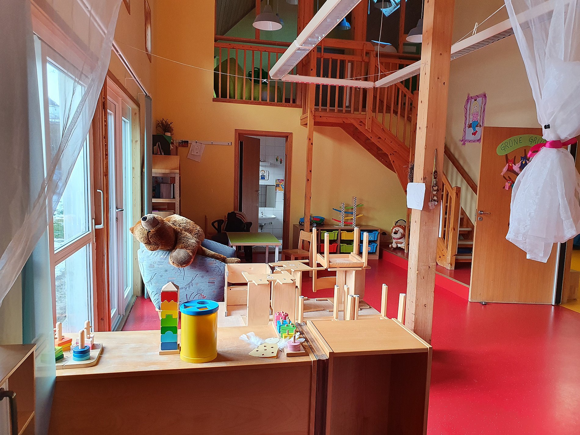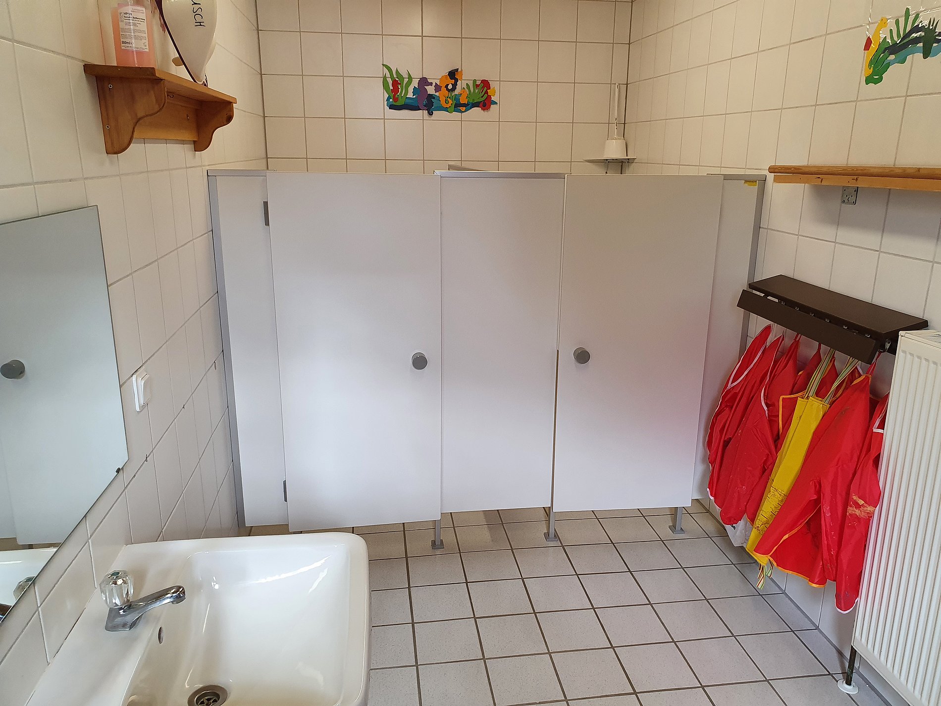 In unserer KiTa gibt es drei Gruppenräume. Die Lila Gruppe, die Gelbe Gruppe und die Grüne Gruppe. Jeder Gruppenraum verfügt über eine zweite Ebene, die als zusätzliche Spielfläche genutzt wird, eine Spüle und eine Kindertoilette. Die Toiletten verfügen über zwei Toilettenkabinen auf Kinderhöhe, zwei Waschbecken sowie Abstellmöglichkeiten für die Zahnputzbecher.