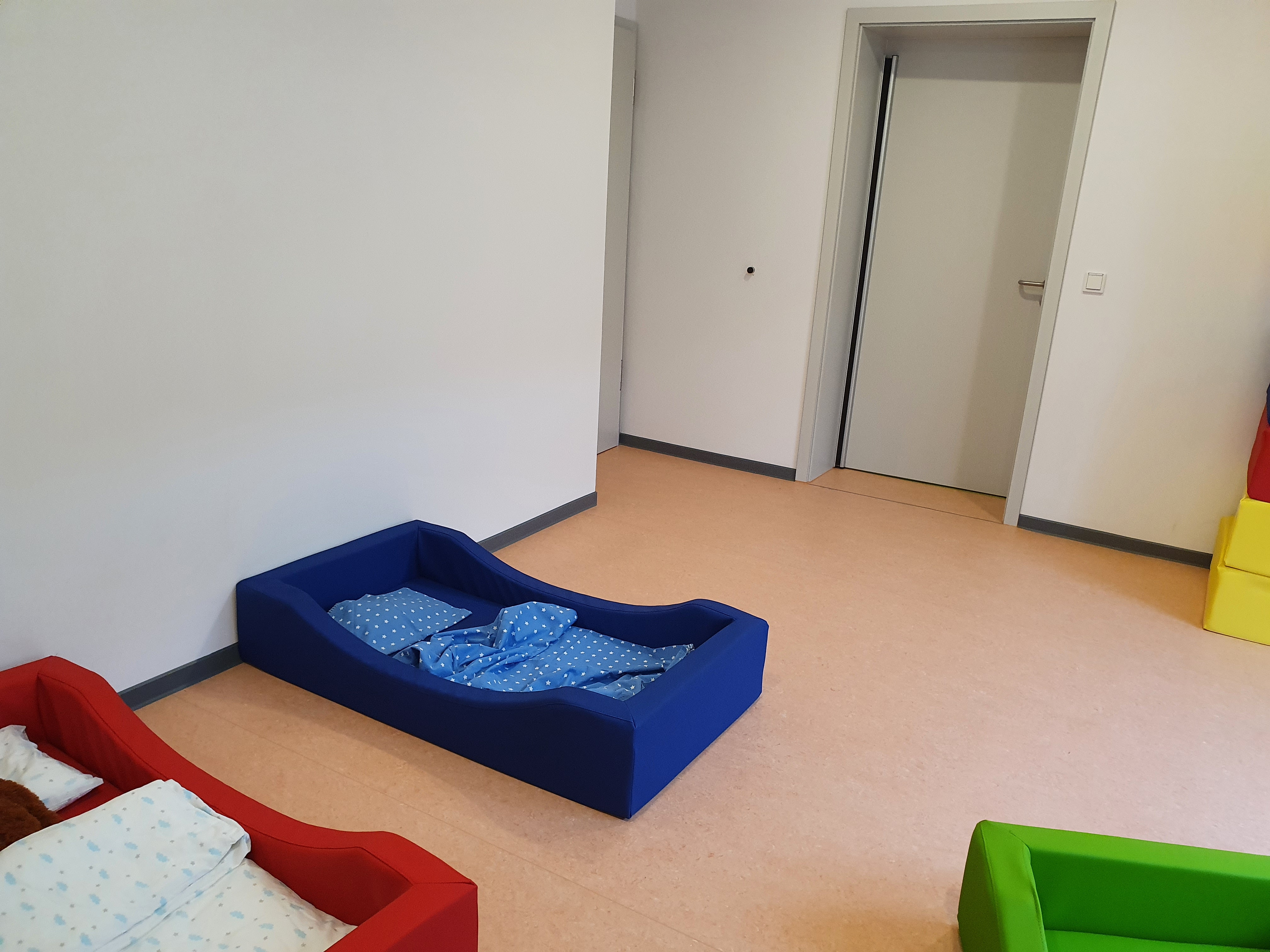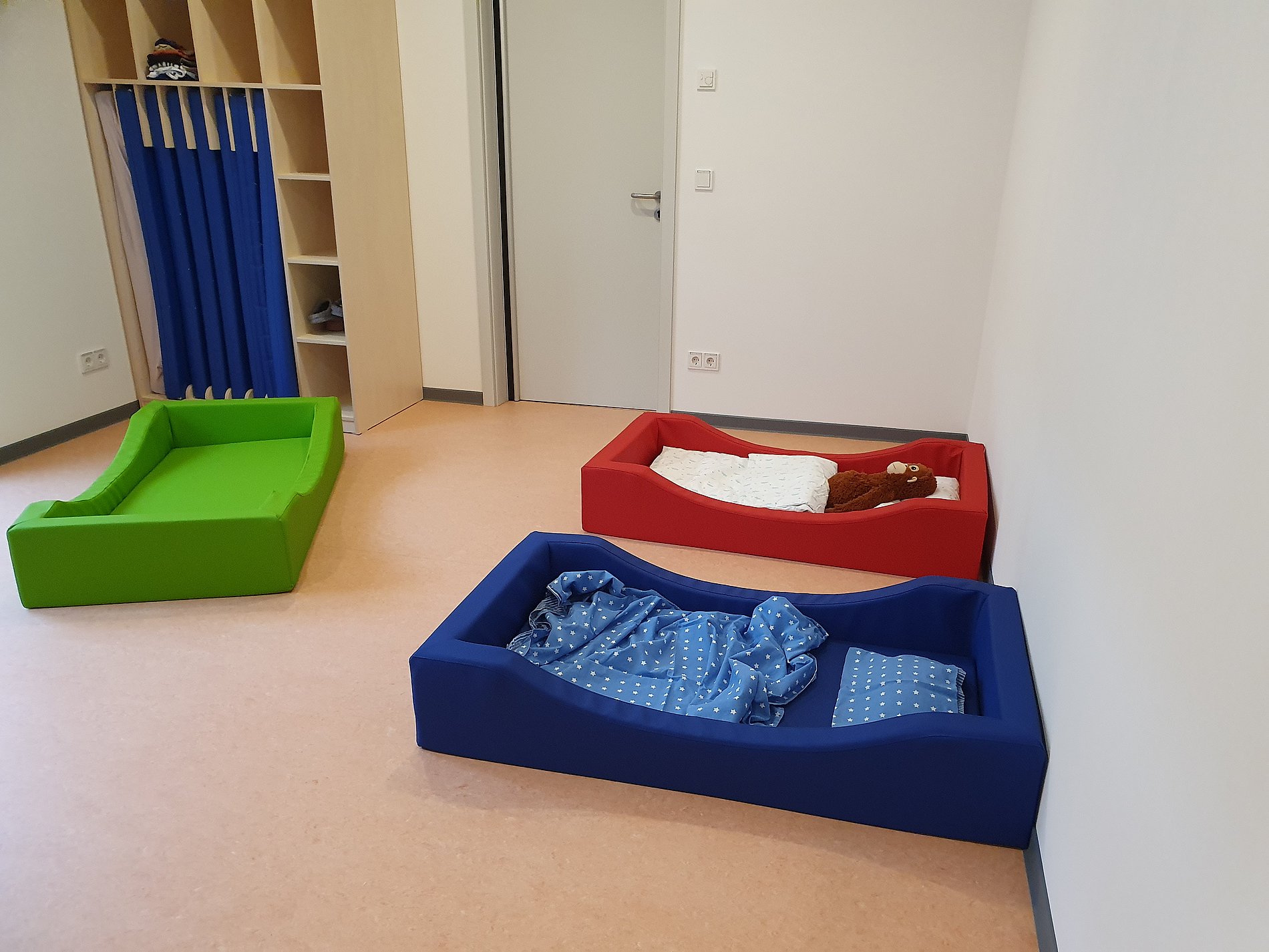 Im Schlafraum haben die Kinder die Möglichkeit, nach ihrem Bedürfnis, zu schlafen.