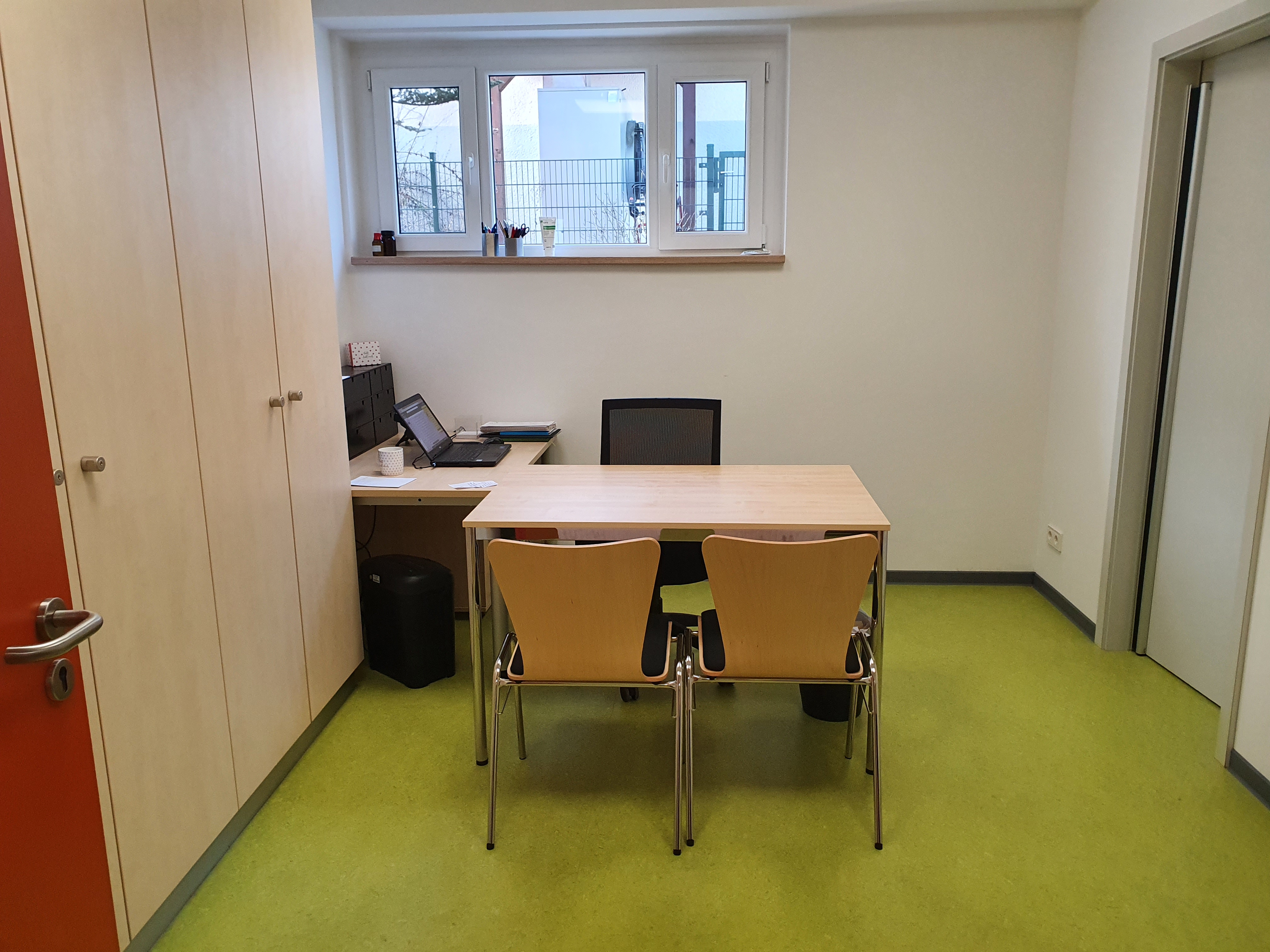 Im Büro der Einrichtungsleitung finden Anmeldegespräche und die organisatorische Arbeit statt.